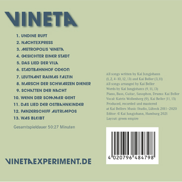 Die Texte verweben Bilder und Musik zu einer schillernden Collage eigener Art, die Fragen aufwirft, aber keine Antworten gibt. Aus diesem Material entsteht im Frühjahr 2021 das Album Vineta. Das mehr oder weniger intuitiv entwickelte Projekt ist zu einem künstlerischen Experiment in vieler Hinsicht geworden, zum Vineta Experiment.